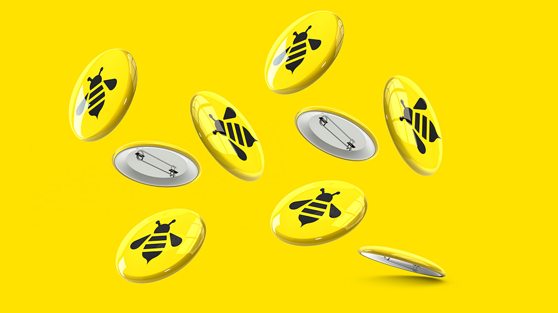 从“蜜蜂”这一意象延展出整套品牌设计,明黄与暗黑一路潇洒行走,被渲染之处,都能燃起豁然开朗