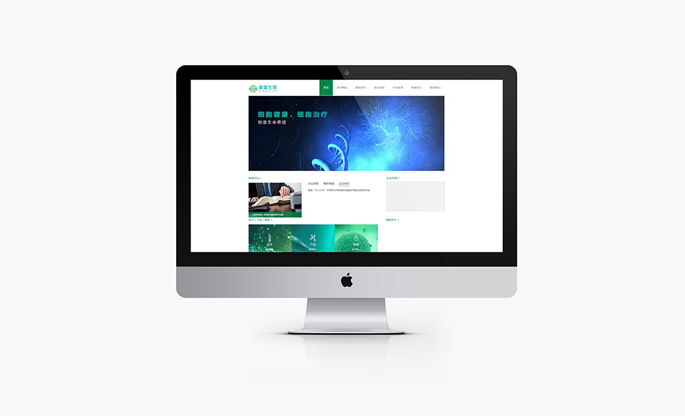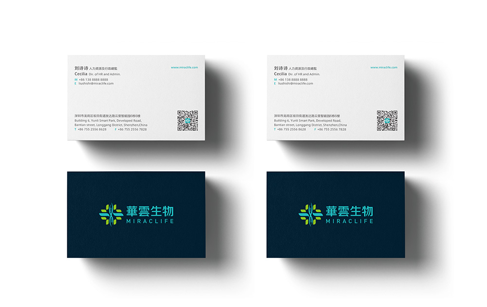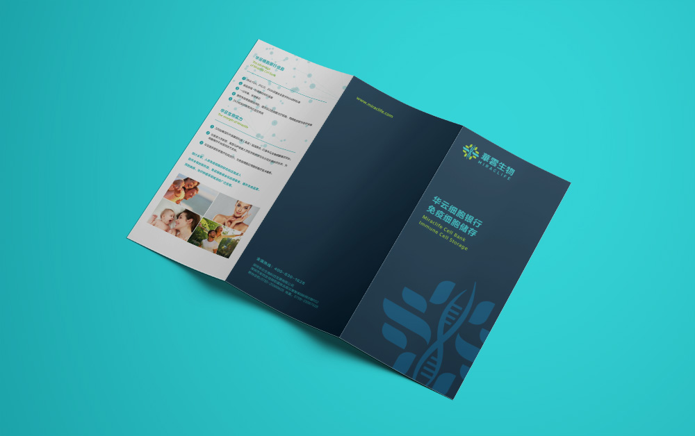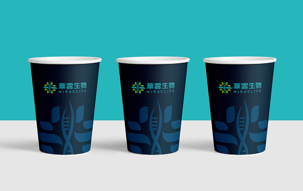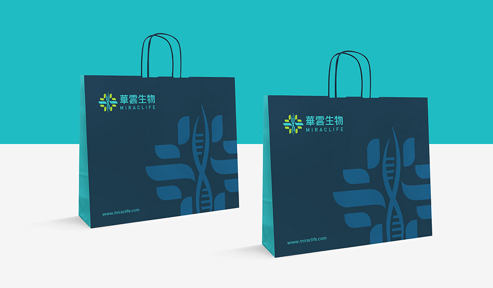 以“十”字为创意元素,加入细胞的相关元素作为主图形。用鲜绿与孔雀蓝配色,突出细胞的生命力,抽象地体现了华云生物的行业属性。